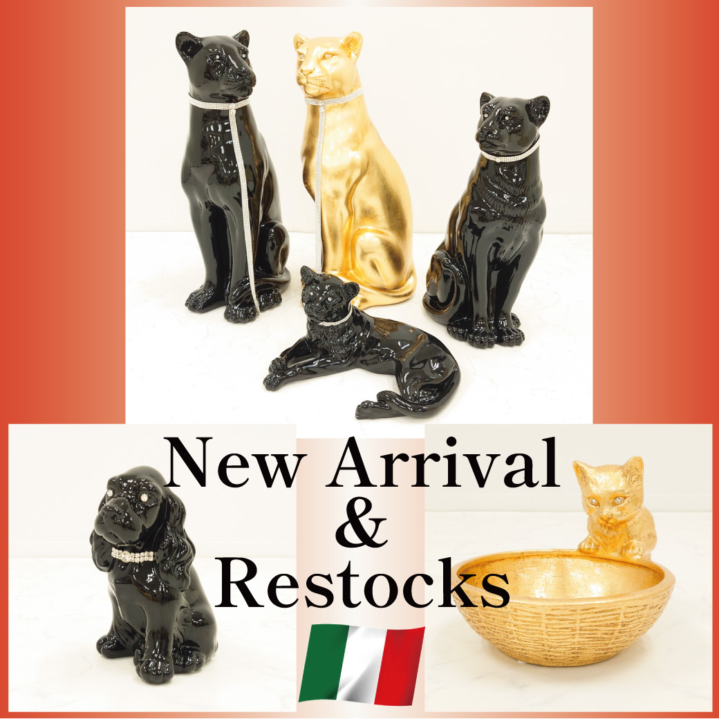 完売していた人気の黒やゴールドの豹や馬、犬の置物が再入荷。